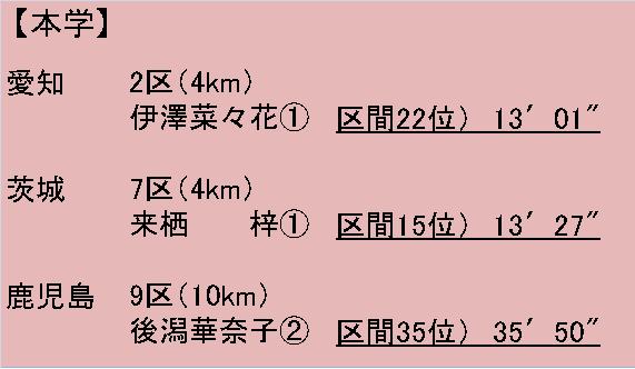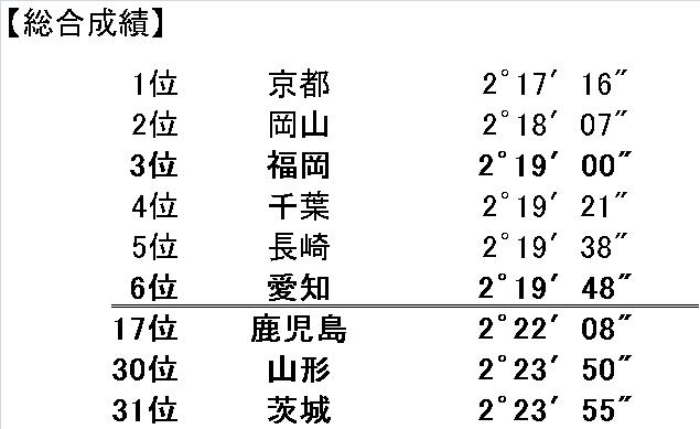 第29回全国都道府県対抗女子駅伝 結果 投稿者:編集者 投稿公開日:2011年1月17日 投稿カテゴリー:What's New 投稿コメント:0件のコメント 1月16日(日)に京都で全国都道府県対抗女子駅伝が行われ、各県の代表選手として本学学生、本学OGが出場しました。 この経験を活かし春のシーズンに向かって頑張って参ります。 結果は以下をご参照下さい。 【大会公式サイト】 【日本陸連 大会情報】 おすすめ 【第58回四大学対校陸上競技大会】 2022年5月9日 【第33回全日本大学女子駅伝対校選手権大会】結果をアップしました 2015年10月28日 第3回順天堂大学競技会のお知らせ 2011年5月8日 コメントを残すコメントコメントする名前またはユーザー名を入力してください メールアドレスを入力してコメント Web サイトの URL を入力してください。(任意) 次回のコメントで使用するためブラウザーに自分の名前、メールアドレス、サイトを保存する。 上に表示された文字を入力してください。