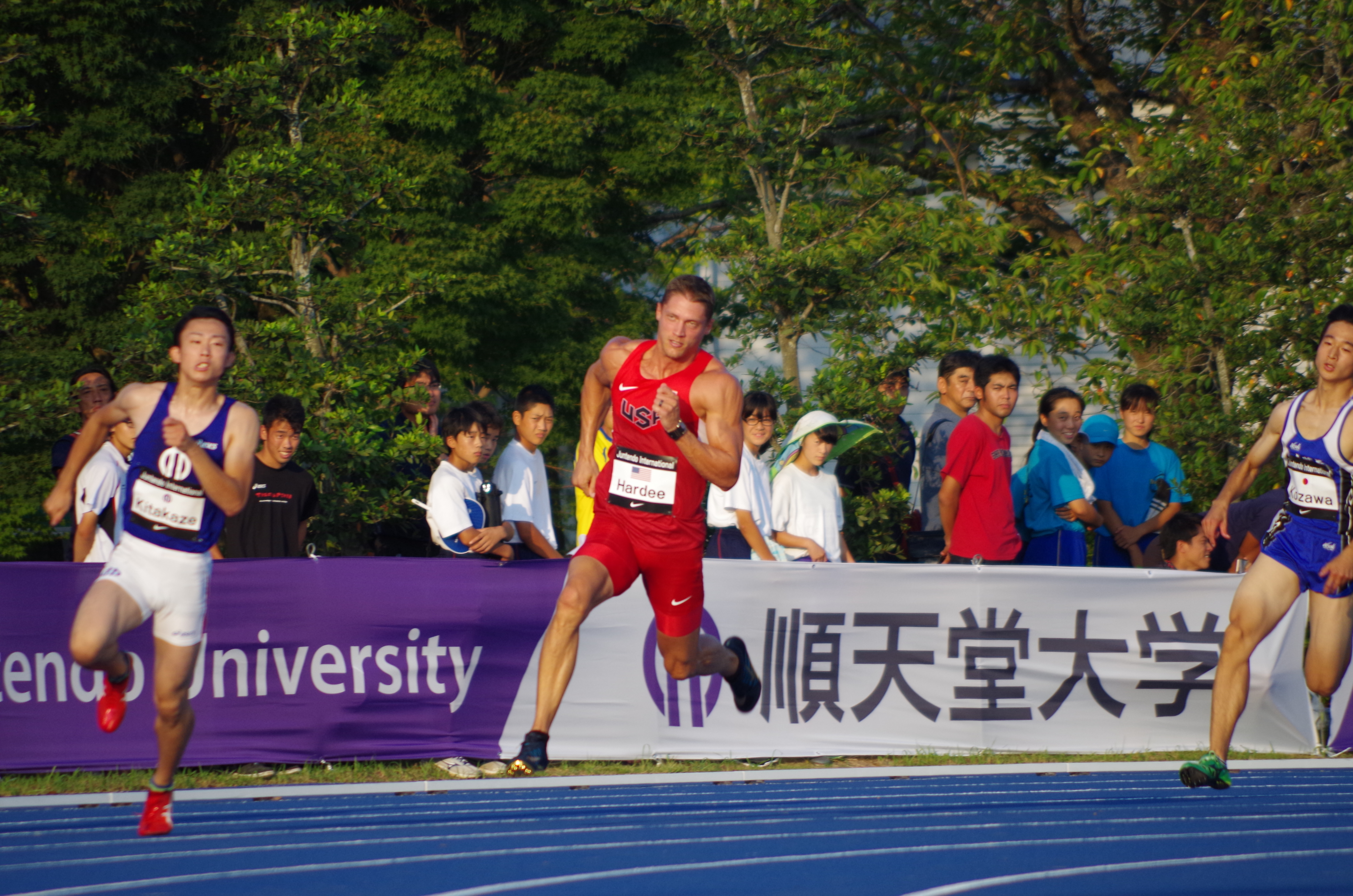 男子200m 混成競技今季8700点台のTrey Hardee(USA) 男子400m 世界陸上日本代表の本学の北川も出走