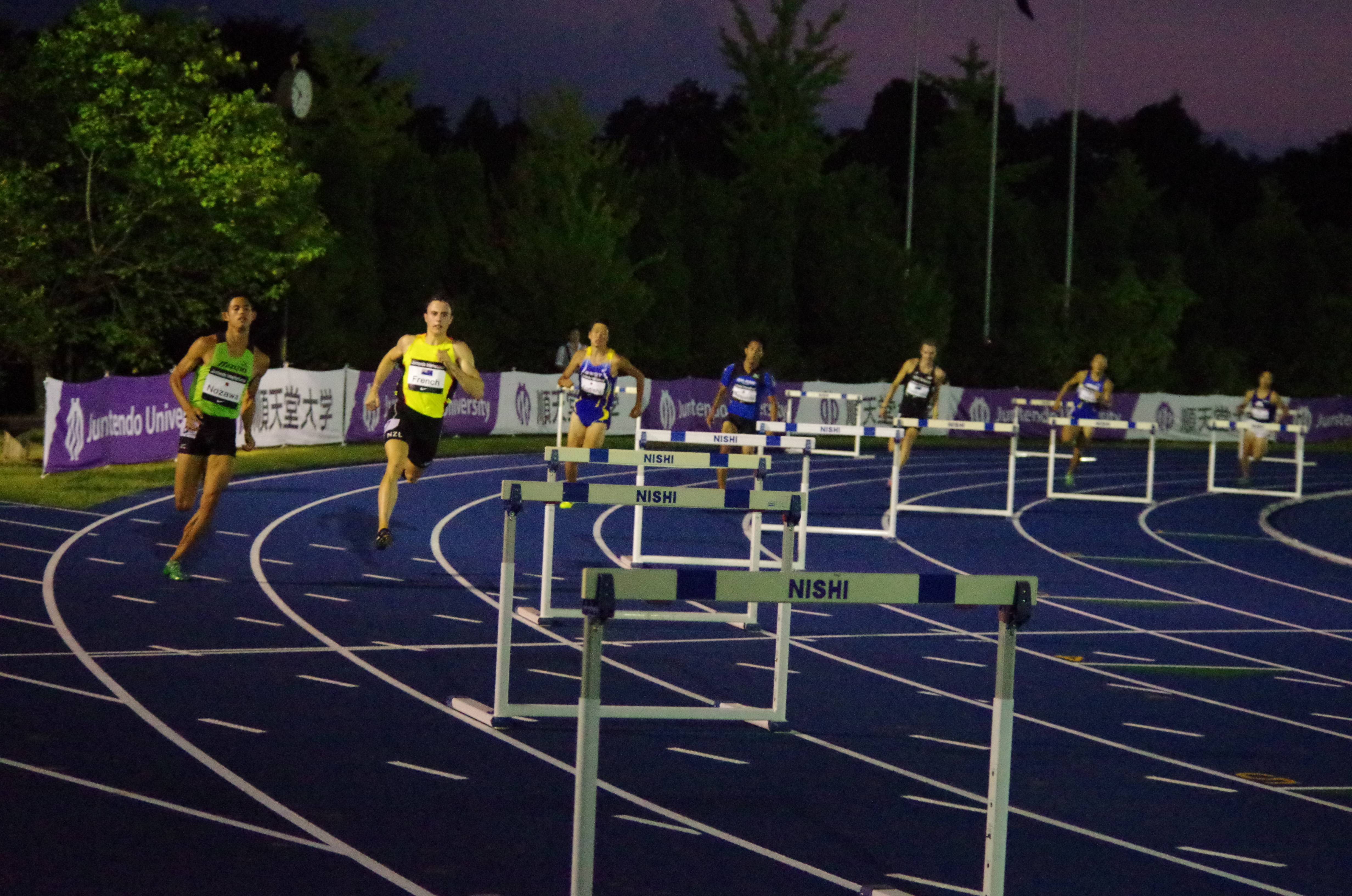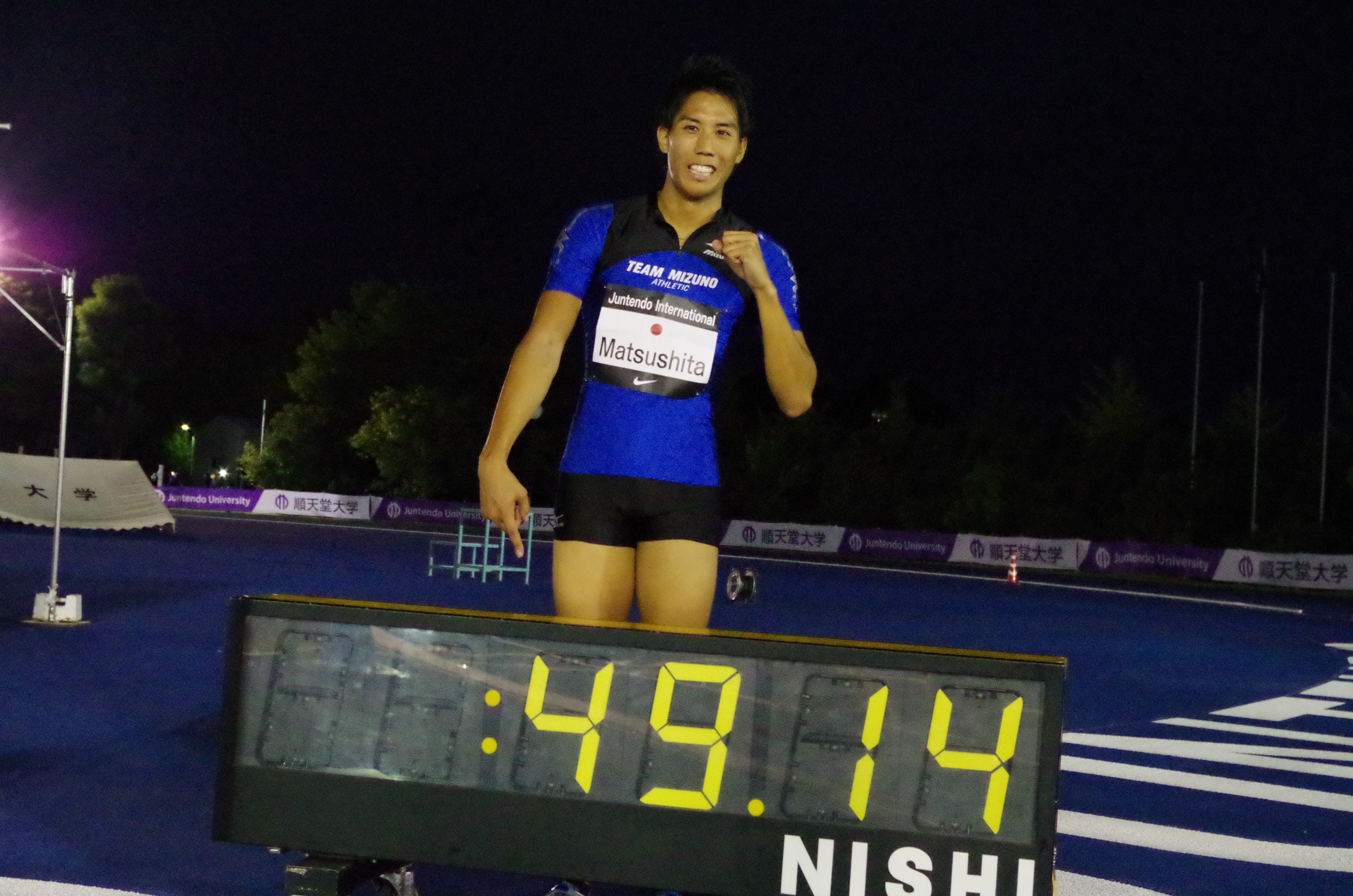 最終種目男子400mH 今季日本最高で会場を沸かせた、本学OB松下祐樹。
