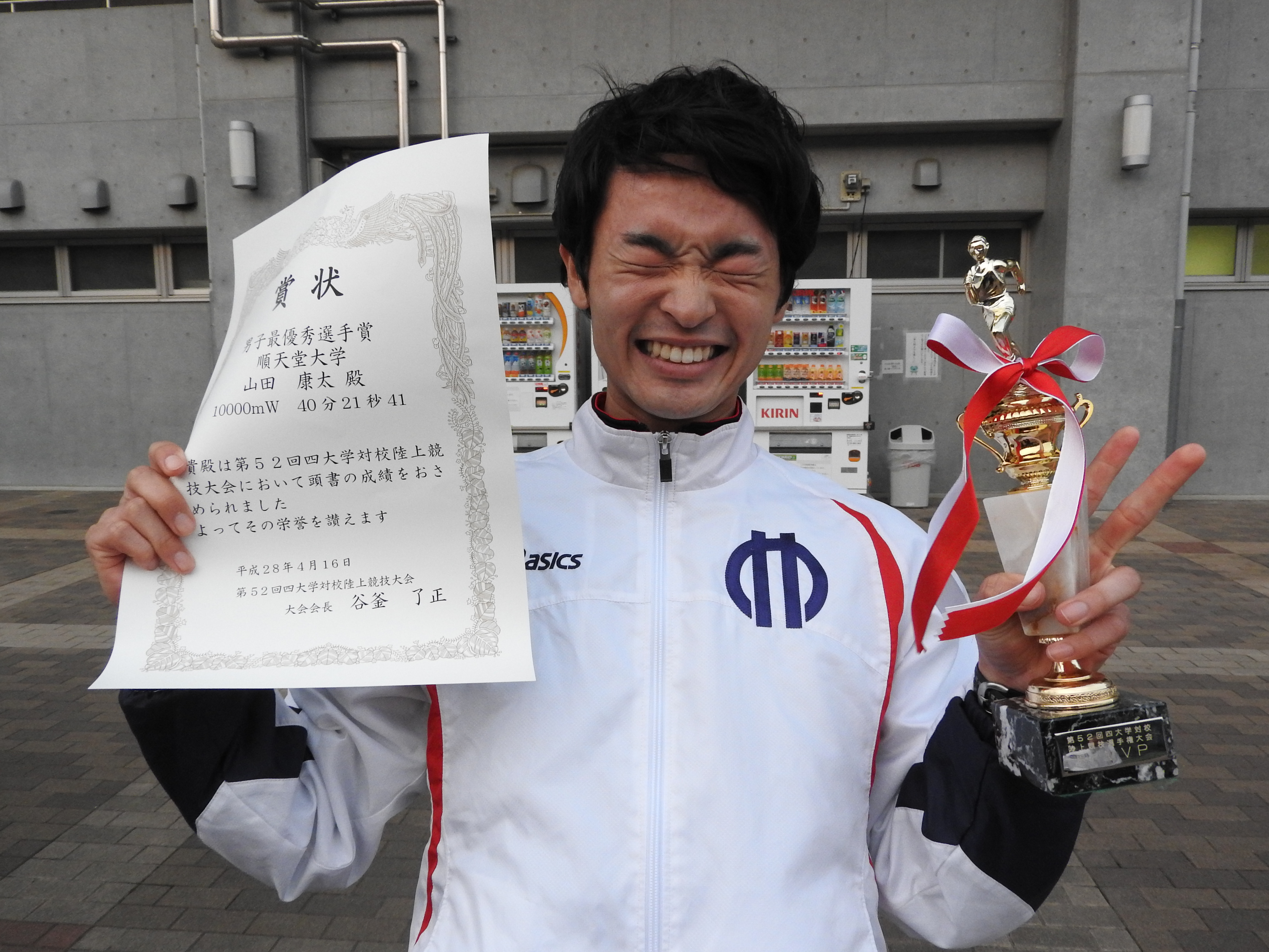そして、10000m競歩に出場した山田康太(4年)が自己新記録・大会新記録・グラウンドレコードをたたき出し、